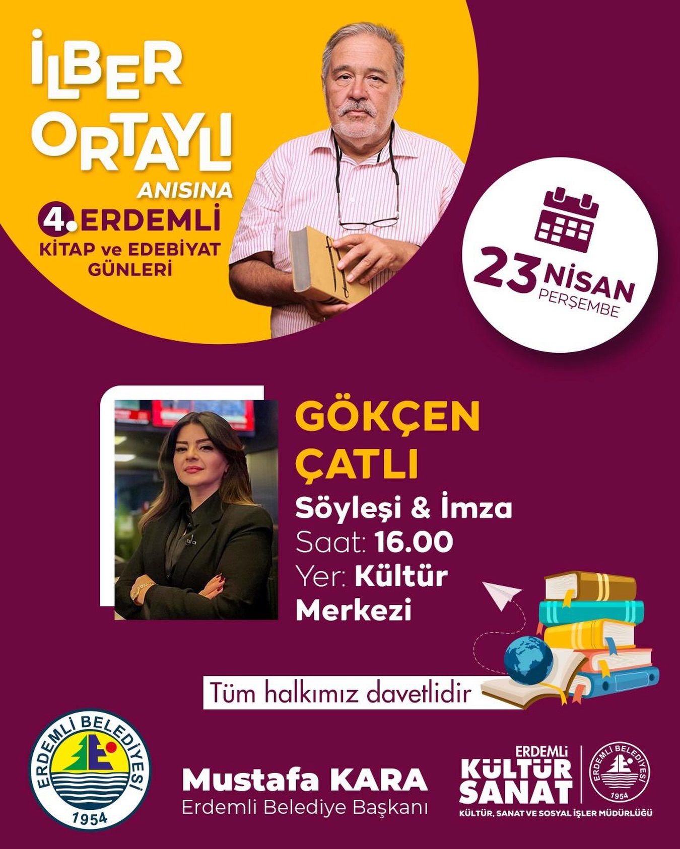 Ana Sayfa KÜLTÜR-SANAT-ETKİNLİK 4. Erdemli Kitap ve Edebiyat Günleri KÜLTÜR-SANAT-ETKİNLİKETKİNLİKLER 4. Erdemli Kitap ve Edebiyat Günleri Yazar medyateksanat - Nisan 22, 2026 FacebookTwitterPinterestWhatsApp Silifke’nin Köpekbalıkları – 25 Nisan medyateksanat - Nisan 22, 2026 Hıdırellez Şenliği- 5 Mayıs medyateksanat - Nisan 22, 2026 Türk Rock Müziği örnekleri – 24 Nisan medyateksanat - Nisan 22, 2026 İmza ve söyleşi günleri medyateksanat - Nisan 22, 2026 FOTOĞRAF SUNUMU – 29 NİSAN medyateksanat - Nisan 22, 2026