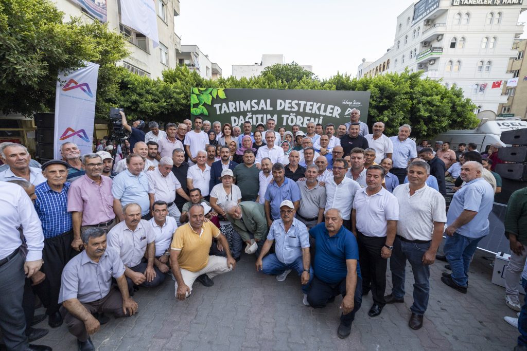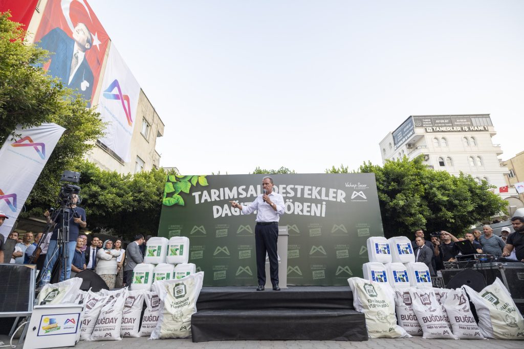 Türkiye Belediyeler Birliği  Başkan Vekili ve Mersin Büyükşehir Belediye Başkanı Vahap Seçer, ‘Destek Büyükşehir’den Üretim Çiftçiden’ teması ile Tarımsal Hizmetler Dairesi Başkanlığı tarafından düzenlenen ‘Atalık Sarı Buğday Tohumu, Enginar Yumrusu, Güneş Paneli ve Sıvı Gübre Dağıtım Töreni’ne katıldı.