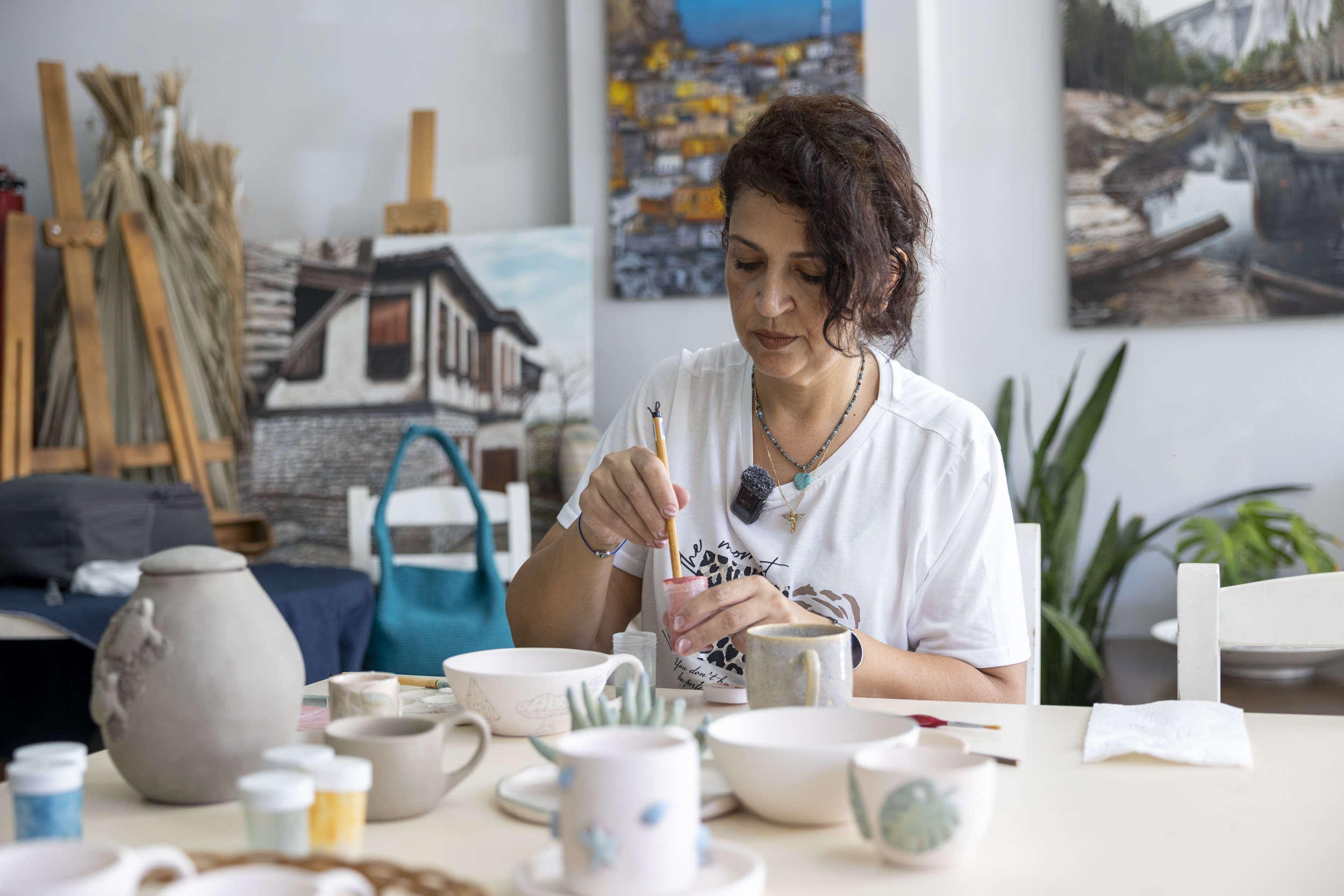 Mersin Büyükşehir Belediyesi’nin üretici kadın stantları, kadın girişimcilerin hayallerine bir adım daha yaklaşmalarına destek oluyor. Stantlarda yer bulan üretici kadınlardan biri de seramik üretimi yapan Zeycan Yırtıcı. 15 yıllık sanat yolculuğunda yağlı boya sevgisini seramik ürünlerine de yansıtan girişimci, ürettiği özgün ürünlerle Büyükşehir’in kurduğu stantlara renk katıyor. Yıllardır kurduğu atölye kurma fikrini gerçeğe dönüştüren Yırtıcı, seramik ürünlerin yanı sıra; bambu, yağlı boya ve farklı el işi ürünlerini de atölyesinde sergiliyor.