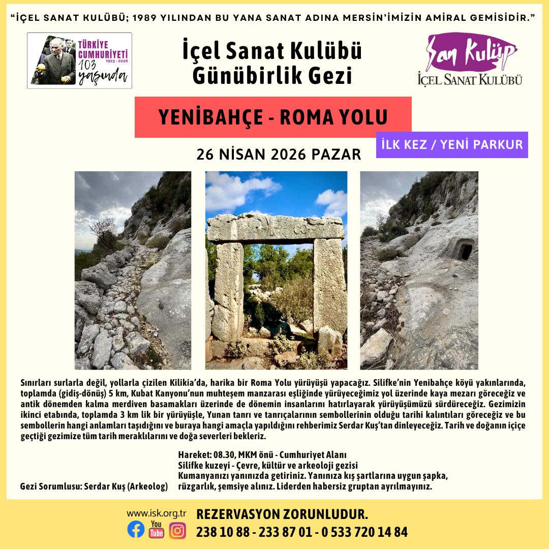 Ana Sayfa KÜLTÜR-SANAT-ETKİNLİK GÜNÜBİRLİK GEZİ – 26 NİSAN KÜLTÜR-SANAT-ETKİNLİKMERSİN - GEZİETKİNLİKLERİÇEL SANAT GÜNÜBİRLİK GEZİ – 26 NİSAN Yazar medyateksanat - Nisan 22, 2026 FacebookTwitterPinterestWhatsApp Silifke’nin Köpekbalıkları – 25 Nisan medyateksanat - Nisan 22, 2026 Hıdırellez Şenliği- 5 Mayıs medyateksanat - Nisan 22, 2026 Türk Rock Müziği örnekleri – 24 Nisan medyateksanat - Nisan 22, 2026 İmza ve söyleşi günleri medyateksanat - Nisan 22, 2026 FOTOĞRAF SUNUMU – 29 NİSAN medyateksanat - Nisan 22, 2026