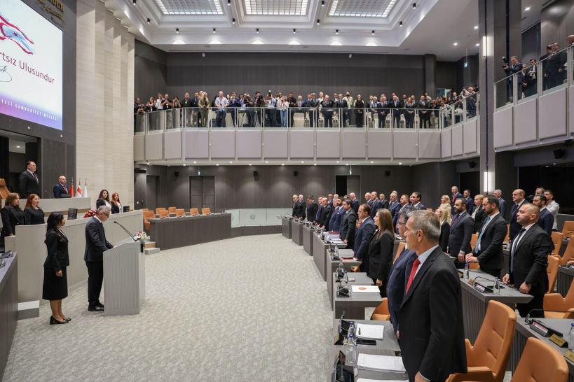 Ardından, Tufan Erhürman Meclis Genel Kurulu’na girerek kürsüye çıktı ve Cumhurbaşkanı Andı’nı okudu.
